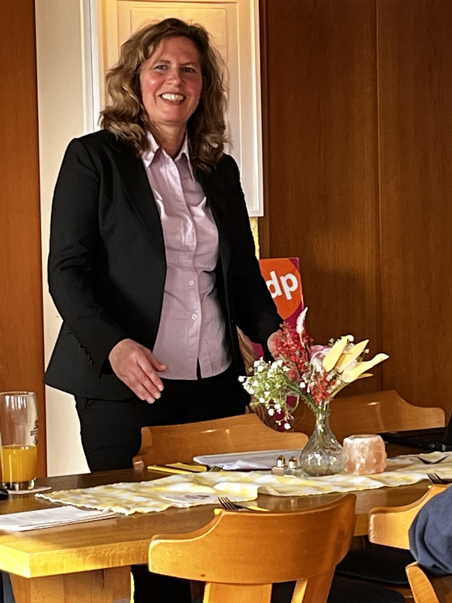 Bildquelle: Gudrun Lindner - Bürgermeisterkandidatin Annette Setzensack erläutert ihr Wahlprogramm
